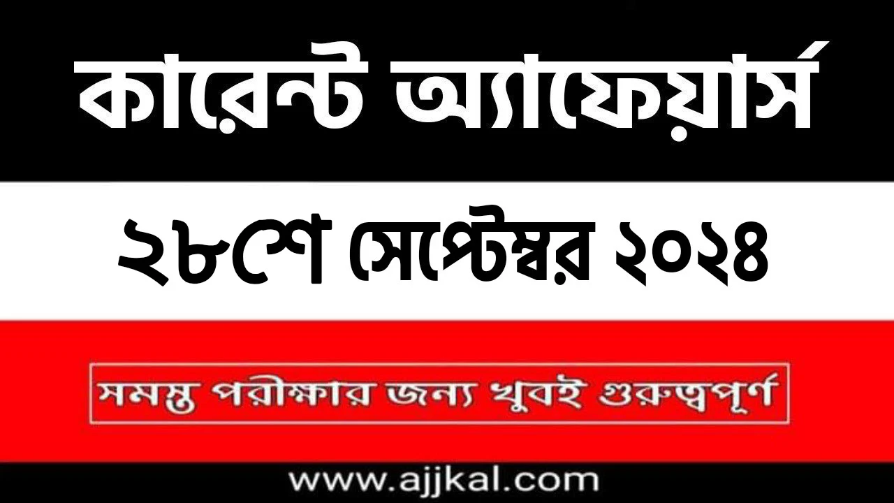 28th September 2024 Current Affairs in Bengali Quiz | 28th সেপ্টেম্বর 2024 দৈনিক কারেন্ট অ্যাফেয়ার্স